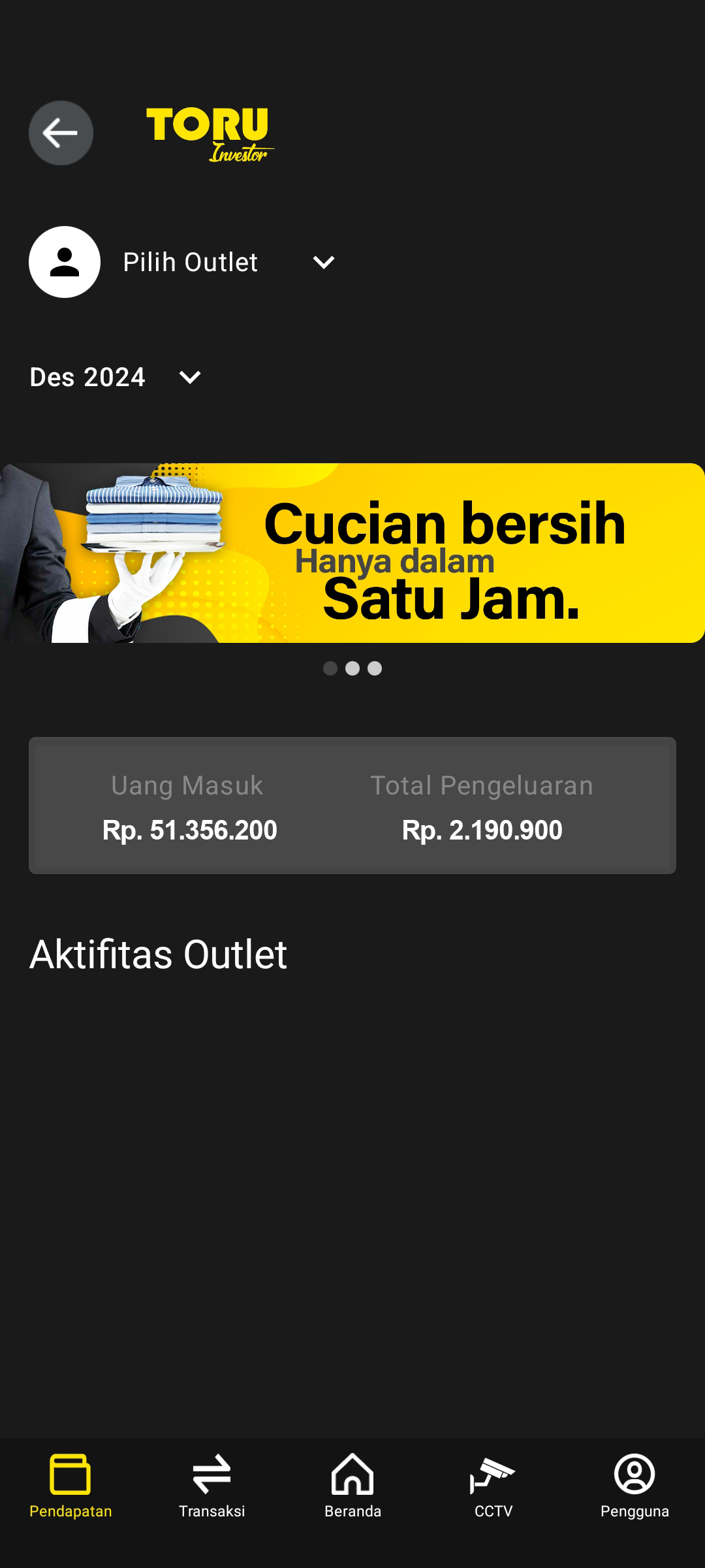 Owener Laundry menggunakan Toru